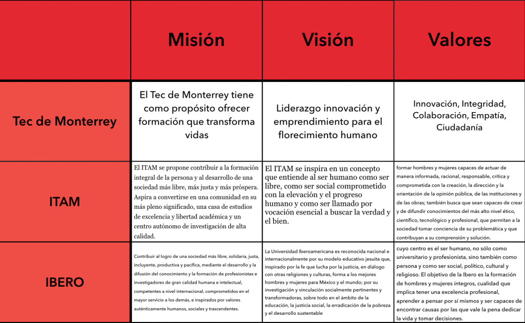 Las universidades que he considerado